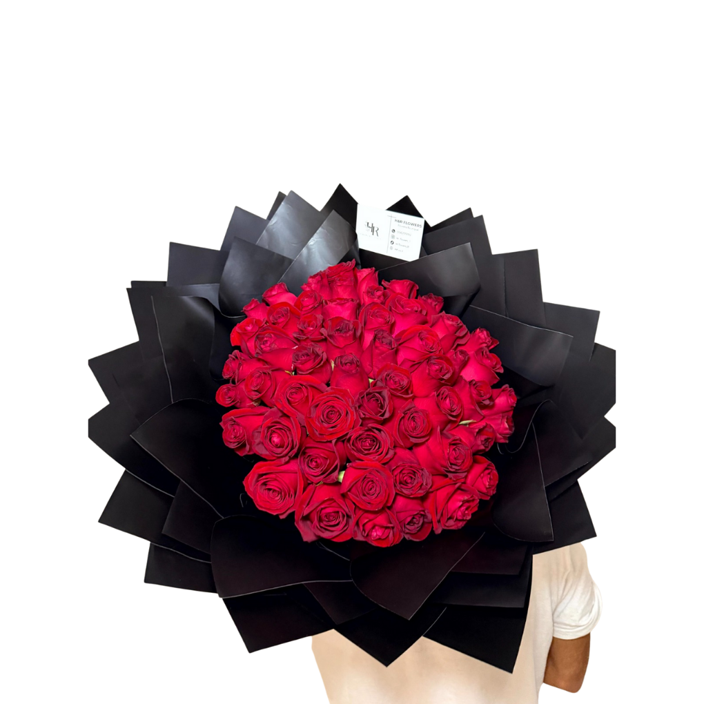 השילוב האולטימטיבי בין תשוקה ליוקרה. זר הוורדים האדומים של HR Flowers בעיצוב "רויאל בלאק" הוא הצהרה של אלגנטיות חסרת פשרות. הוורדים האדומים והקטיפתיים שלנו נבחרים אחד-אחד בשל צבעם העמוק וגודלם המרשים, ועטופים בנייר פרימיום שחור ומט המעניק להם קונטרסט עוצר נשימה. זהו הזר למי שרוצה להרשים באמת – מראה נקי, מודרני ויוקרתי שפשוט אי אפשר להתעלם ממנו.